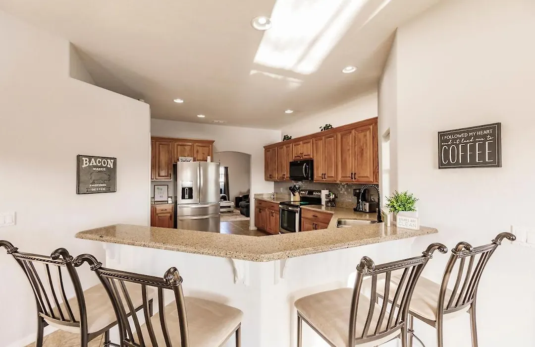 Luxurious 4 Bedroom Canal-Front Home, Pet Friendly est équipée d'une cafétière/théière électrique, d'un réfrigérateur et de verrerie pour préparer vos repas dans un coin repas extérieur.